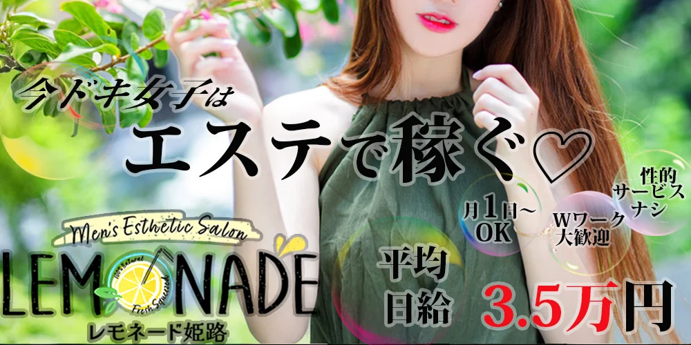 ☆顧客満足度NO.1☆ レモネード姫路店は貴方だけの特別な”癒し”をご提供する メンズエステサロンです。 二人きりの空間だからこそ実現できる至高の癒し・ドキドキをご体感ください。 日々のお仕事でお疲れの紳士様に、是非オススメです。